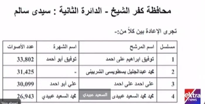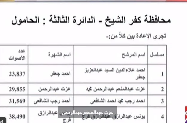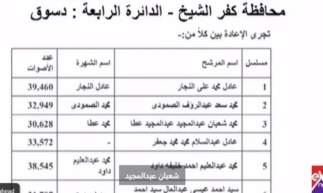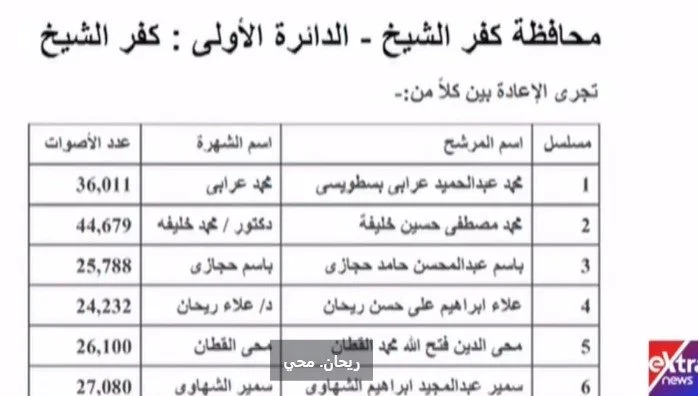 وجاءت نتائج الفرز في محافظة كفر الشيخ على النحو التالي: