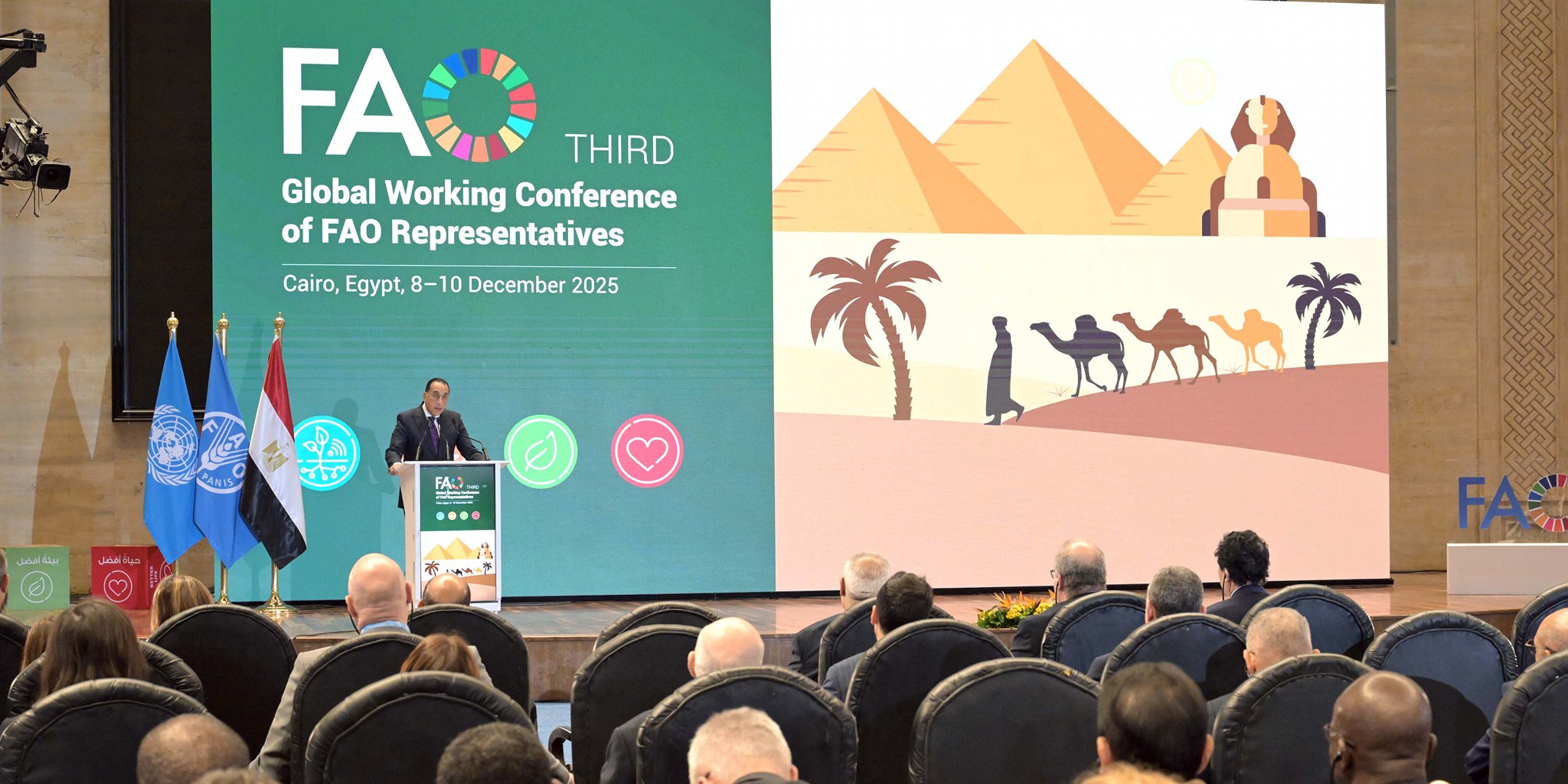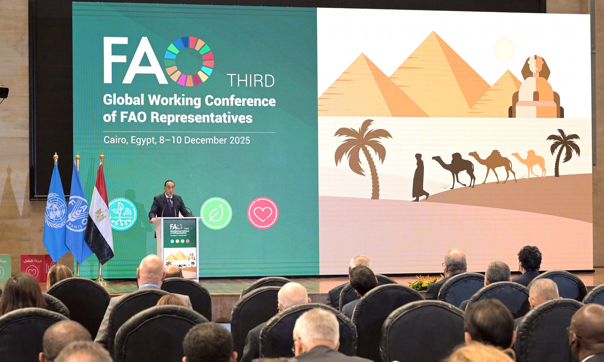 وخلال كلمته، أشار رئيس مجلس الوزراء إلى أن استضافةَ مصر للمؤتمر العالمي الثالث لممثلي منظمة الأغذية والزراعة، تعكس التزام الدولة المصرية الراسخ بدعم المنظمة ودورها المحوري في تعزيز الأمن الغذائي العالمي، وتطوير النظم الزراعية والغذائية، ودعم الدول الأكثر احتياجاً في مواجهة التحديات الإنسانية والاقتصادية.