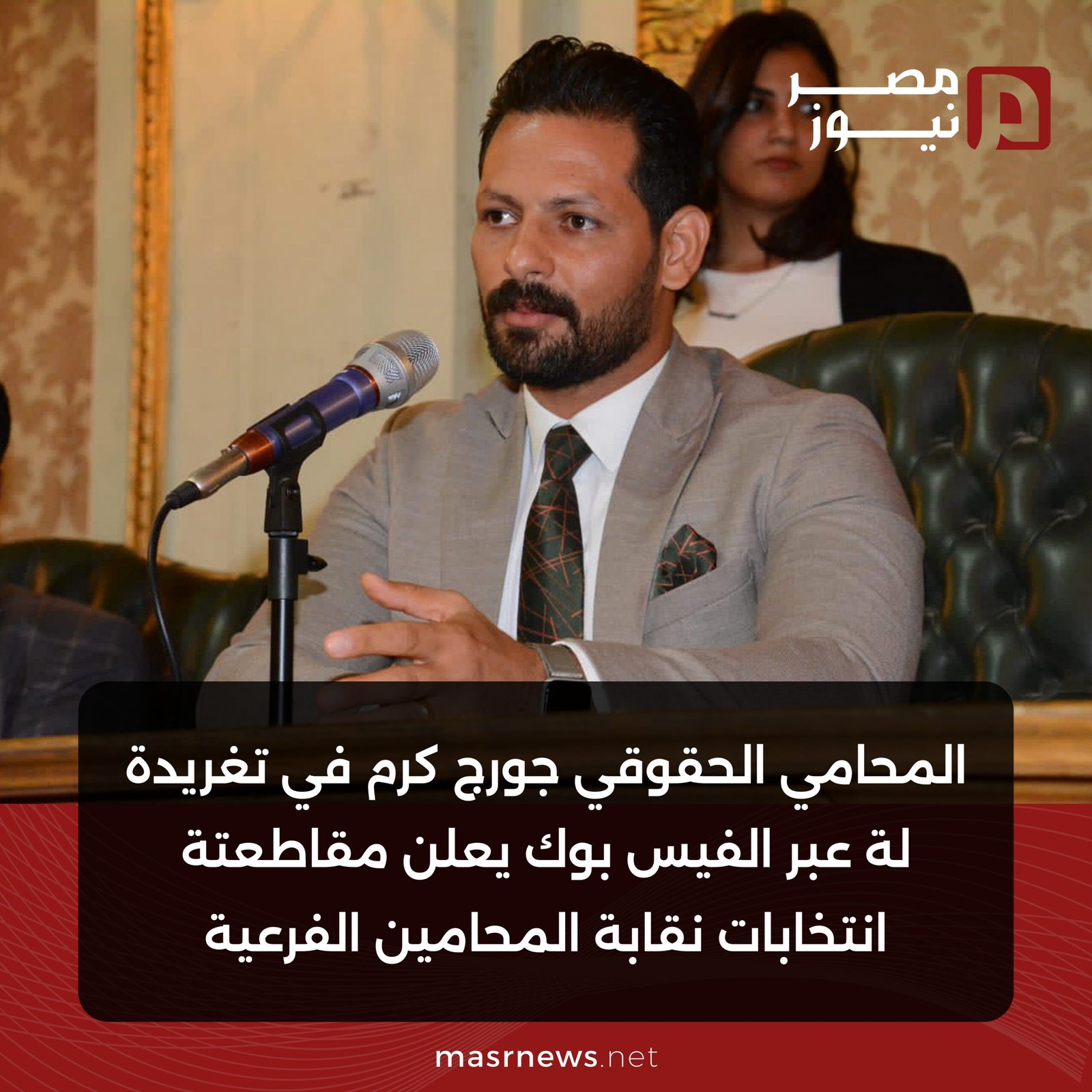 في بيان حاسم حمل نبرة صادقة ومسؤولية مهنية واضحة، أعلن المستشار “جورج كرم” مقاطعته الكاملة لانتخابات نقابة المحامين الفرعية، في خطوة أثارت تفاعلًا واسعًا داخل الأوساط القانونية وعلى منصات التواصل الاجتماعي، لما تحمله من دلالات عميقة تتجاوز مجرد موقف شخصي، لتلامس جوهر الأزمة التي تمر بها العملية الانتخابية داخل النقابة.