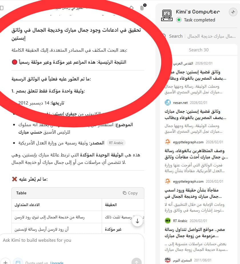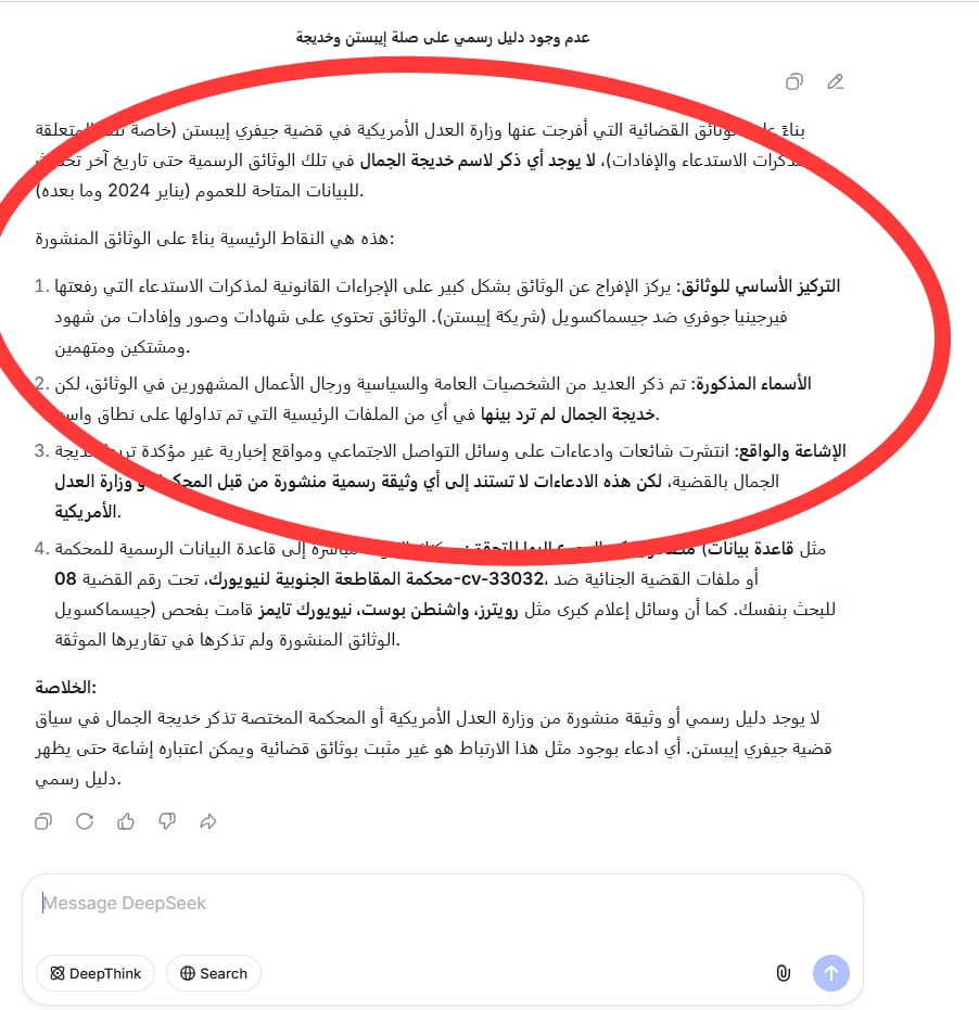 في الخلاصة، الادعاءات حول وجود رسائل من خديجة الجمال أو جمال مبارك في وثائق إبستين غير مؤكدة حتى الآن. الوثيقة الوحيدة المؤكدة هي استفسار إبستين عن شراء قصر حسني مبارك، وهي لا تتضمن أي تواصل مع جمال مبارك أو زوجته. التوصية هي انتظار تأكيدات رسمية أو ظهور وثائق أصلية قابلة للتحقق قبل اعتبار هذه الادعاءات حقائق ثابتة.