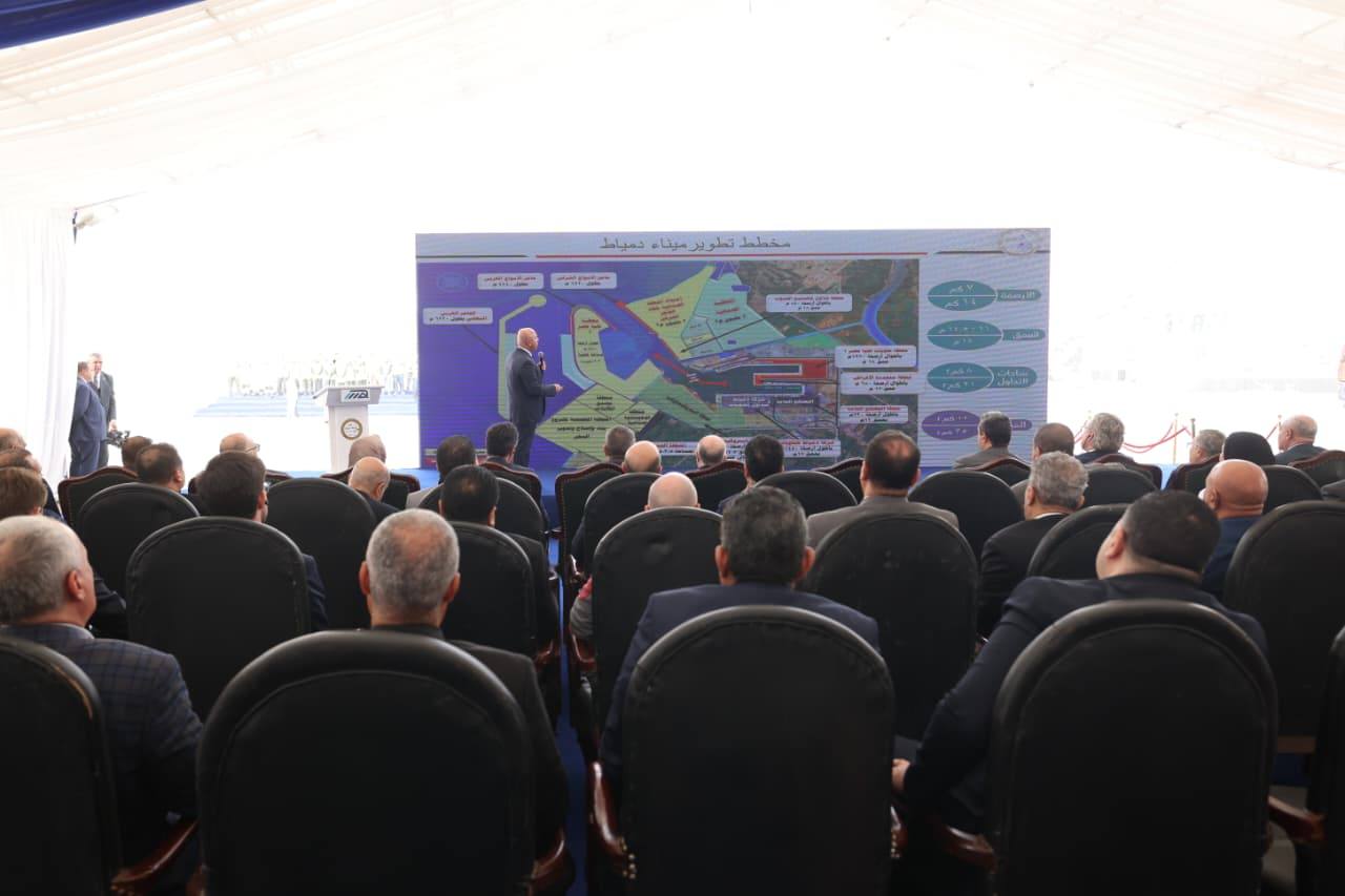 واسمحوا لى أن أستعرض معكم خريطة توضح مخطط تطوير ميناء دمياط وما تم تنفيذه حتى الآن مستعرضا مخطط تطوير ميناء دمياط وزيادة الأرصفة من 7كم الي على 14كم وزيادة الاعماق من 11-14.5م الي 18م وزيادة ساحات التداول من 8كم الي 21كم والمساحة من 12كم الي 35كم. وعدد القاطرات من ١٢ إلى ١٦ قاطرة مستعرضا محطات تحيا مصر 1 ومحطة تداول الحبوب وحواجز الامواج الغربي والشرقي ومنطقة مصنع الكابلات والمنطقة اللوجيستية الصناعيه والمنطقة المخصصة لتخريد وبناء وصيانة السفن مشيرا إلي أن شركة موانئ مصر البحرية تخطو خطوات جادة نحو إدارة وتشغيل عدد المحطات والموانئ المصرية وان وزارة النقل تدعمها بشكل كبير لتصبح في مصاف المشغلين العالميين لافتا الى ان هذه الشركة مملوكة لكل من هيئة ميناء دمياط وهيئة قناة السويس والشركة القابضة للنقل البحرى والبرى.