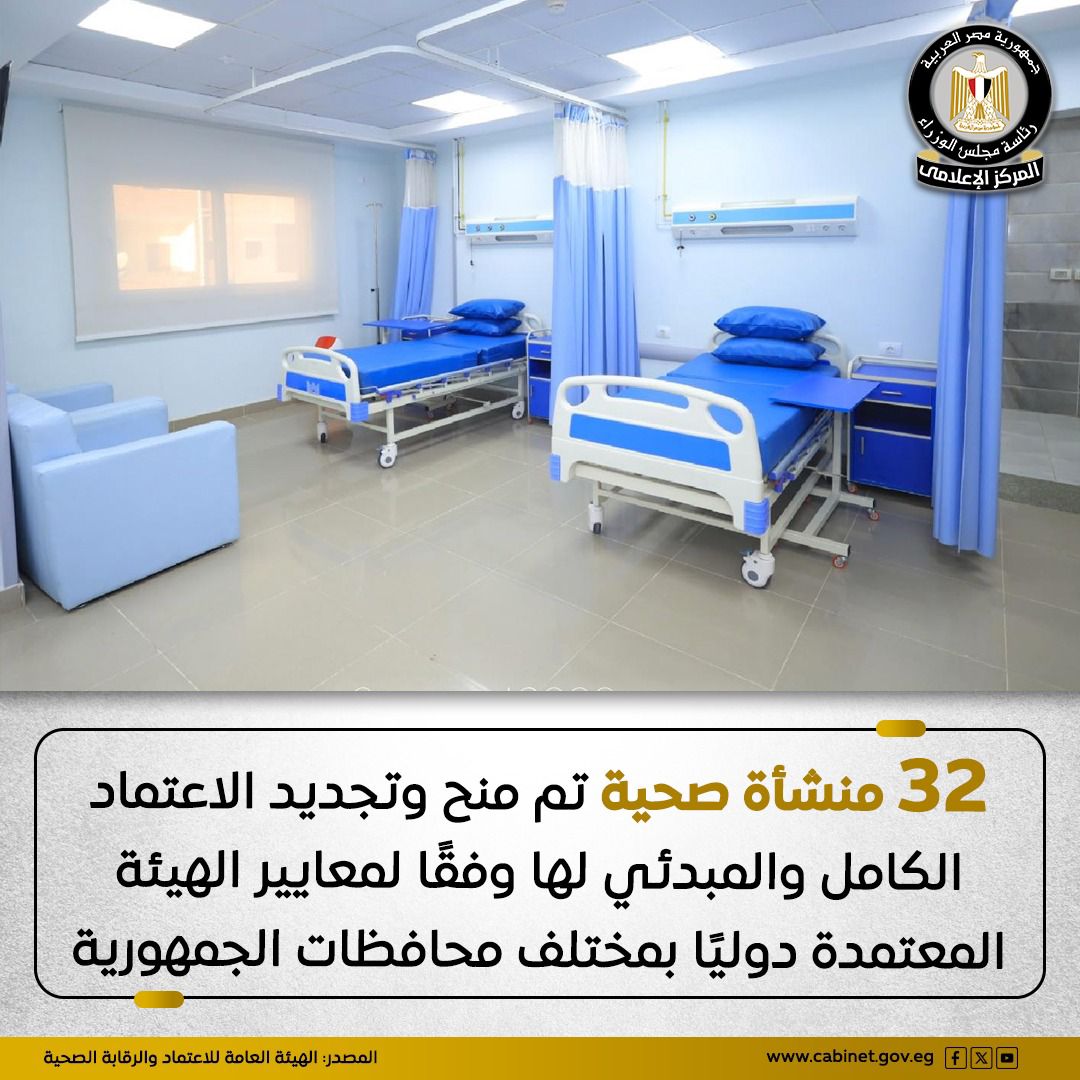أعلنت الهيئة العامة للاعتماد والرقابة الصحية عن صدور أحدث قرارات اللجنة العليا لاعتماد المنشآت الصحية، والتي شملت منح وتجديد الاعتماد الكامل والمبدئي لـ 32 منشأة صحية بمختلف محافظات الجمهورية، في خطوة تعكس التوسع المستمر في تطبيق معايير الجودة وسلامة المرضى وفقًا للمعايير الدولية المعتمدة من الجمعية الدولية لجودة الرعاية الصحية (ISQua).