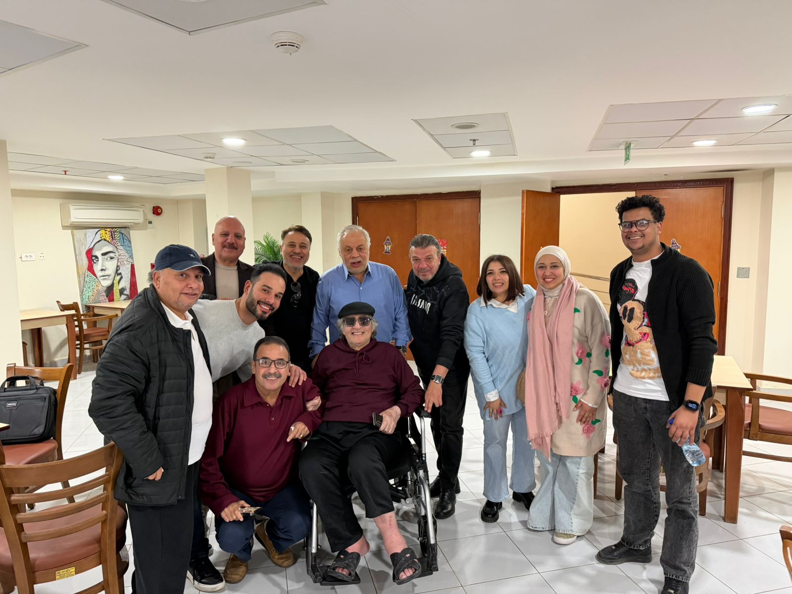 وضمّ الوفد عددًا من أعضاء مجلس النقابة، من بينهم الفنان إيهاب فهمي، والفنان أحمد سلامة، والفنان عزوز عادل، حيث حرصوا على قضاء وقت مع الفنان الكبير وتبادل الأحاديث الودية معه، في أجواء غلب عليها التقدير والاحترام لمسيرته الفنية الطويلة.