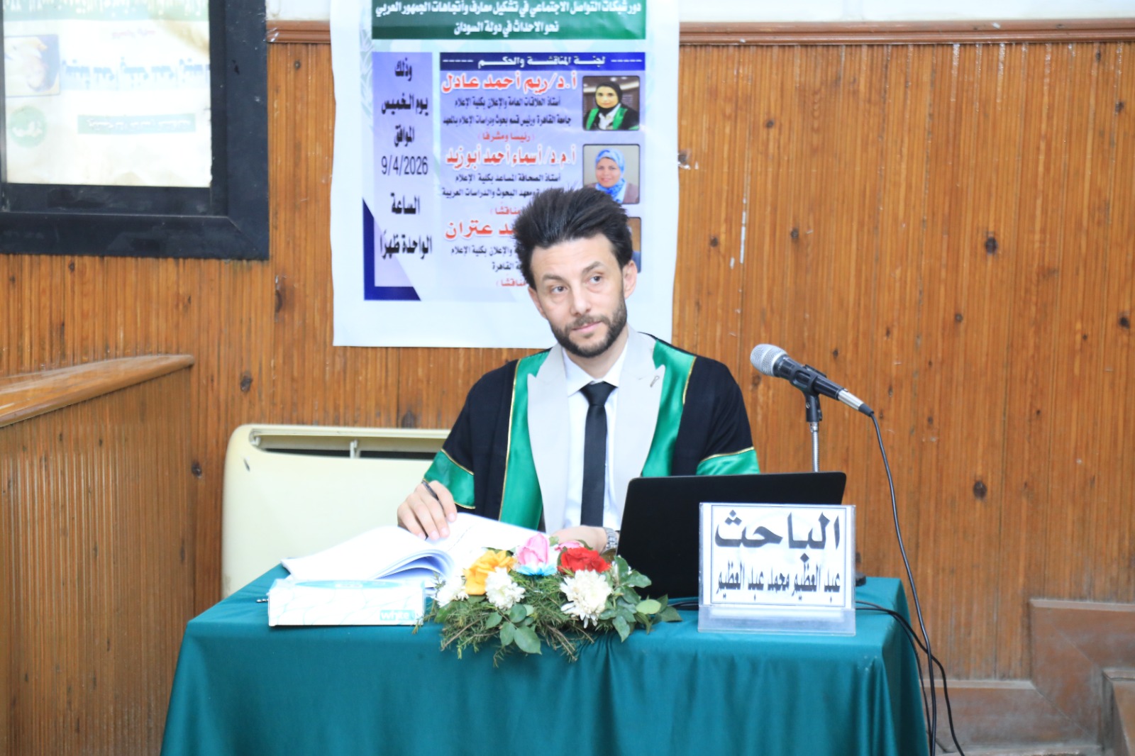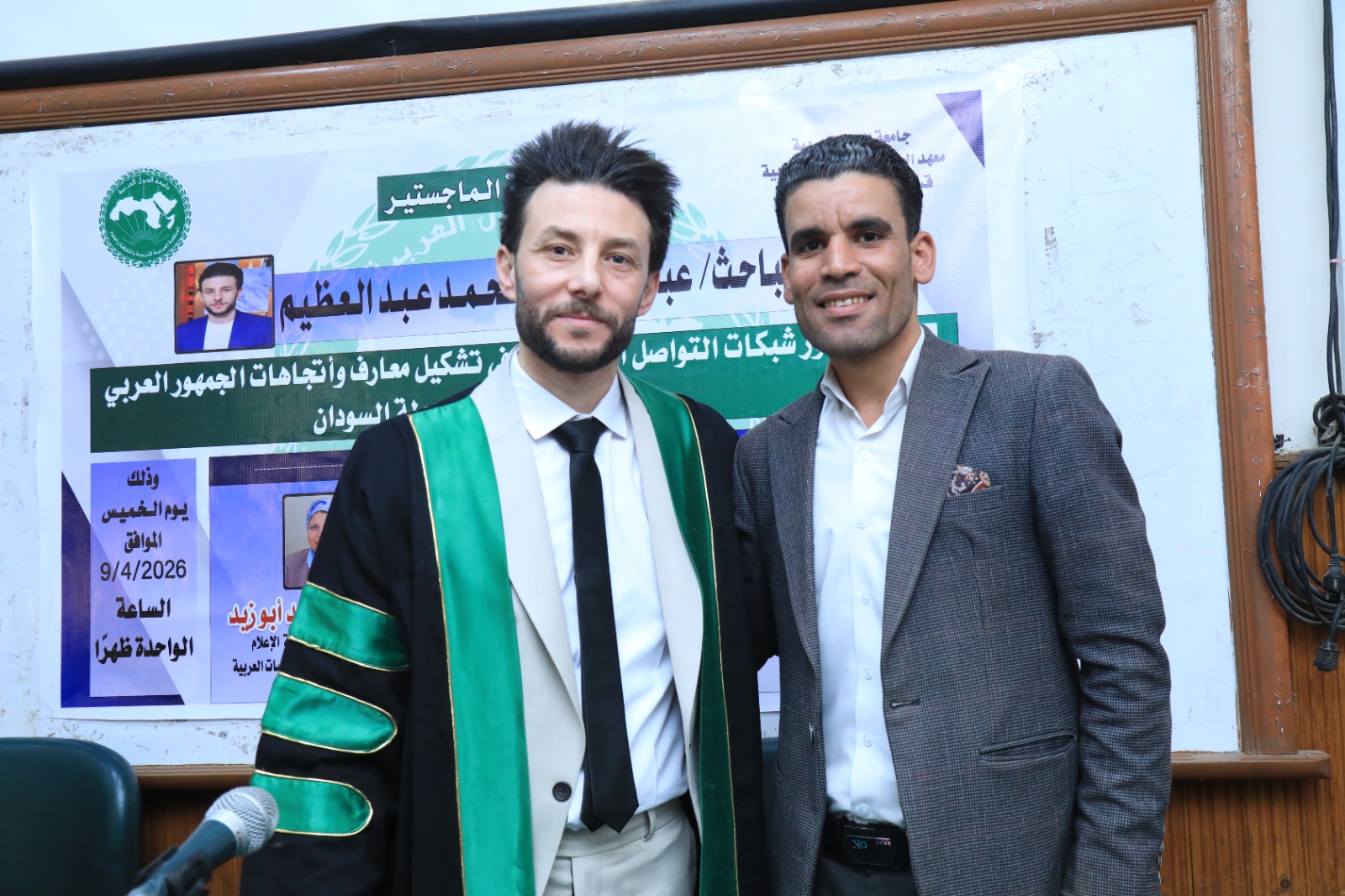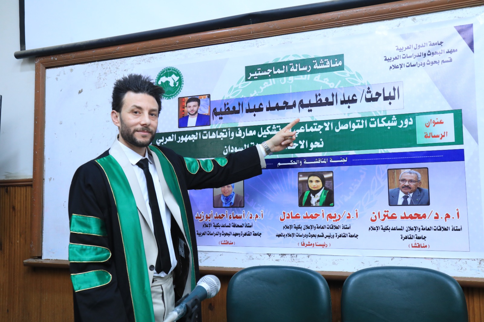 وشهدت المناقشة حضور أصدقاء الباحث وأسرته وزملائه من الوسط الأكاديمي، حيث أشادت اللجنة بمستوى الرسالة وما تضمنته من تحليل علمي لدور شبكات التواصل الاجتماعي في تشكيل وعي واتجاهات الجمهور العربي تجاه القضايا الإقليمية، خاصة ما يتعلق بالأحداث في دولة السودان.